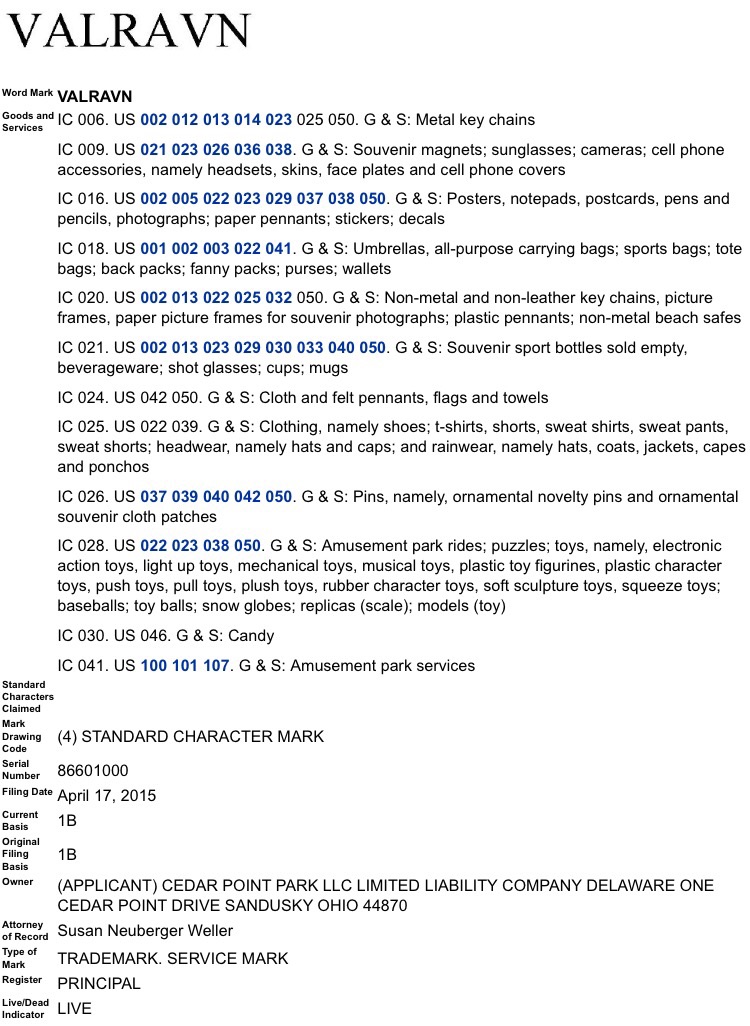 It would be cool if CW completed the series but I wonder if they think Ziz won't go over well with the GP? It is definitely the least prominent of the three and doesn't sound large or ominous like Behemoth or Leviathan. Idk if the Valravan name is a fit for CP, but I definitely want to see a dive coaster come to the Point.