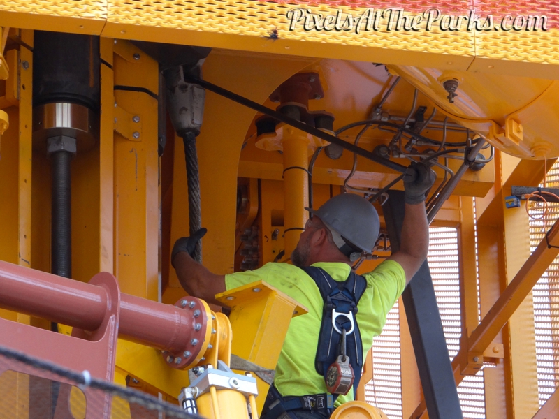 Well it has been quite a long time since we have heard anything about Falcon's Fury over at Busch Garden's Tampa. Luckily, some noticeable progress on the ride was made recently and it seems that the large cables that pull the ride up the top have been replaced.