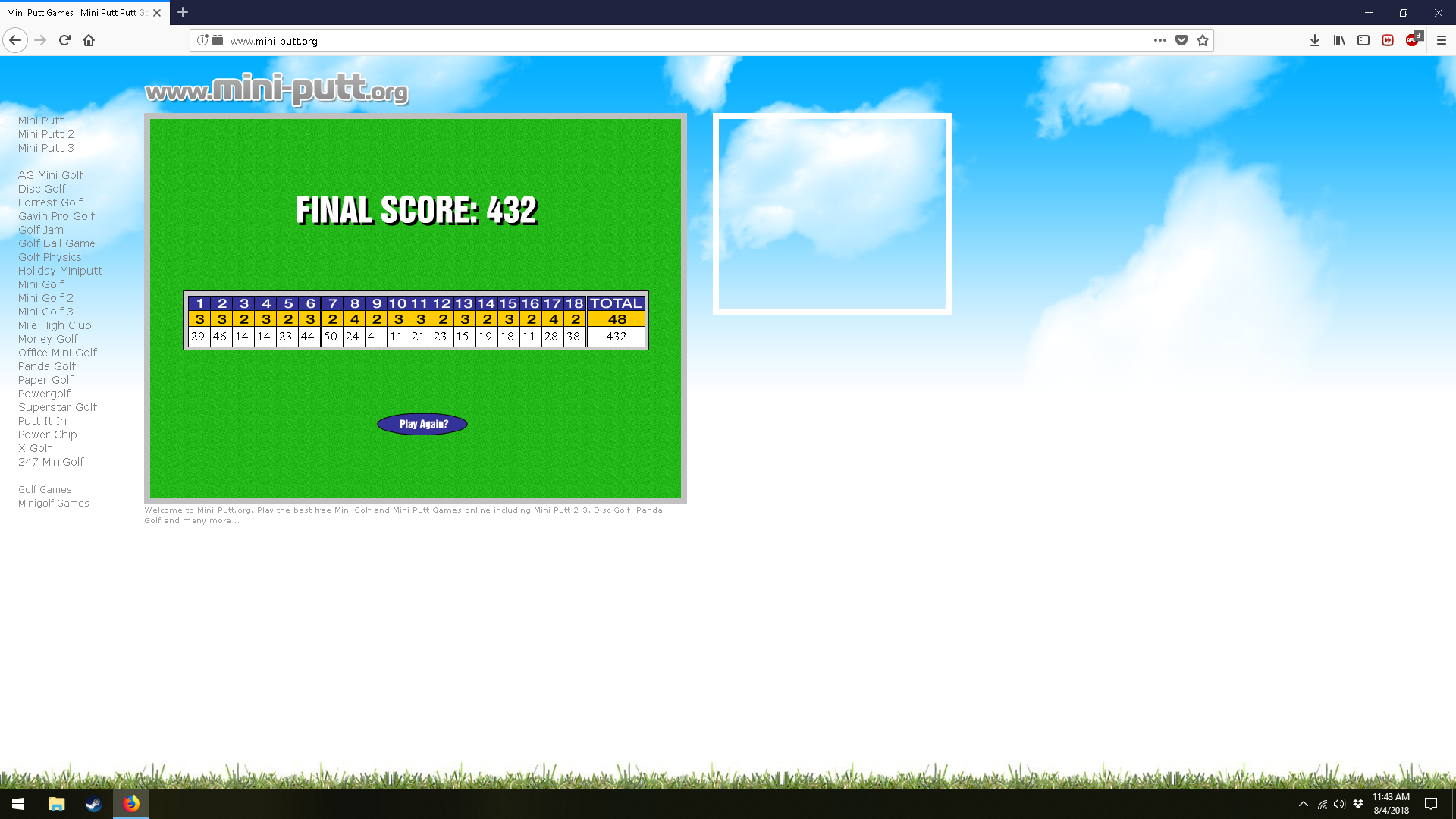 I just got a score of 432 on Miniputt! Wow!!! Amazing!!