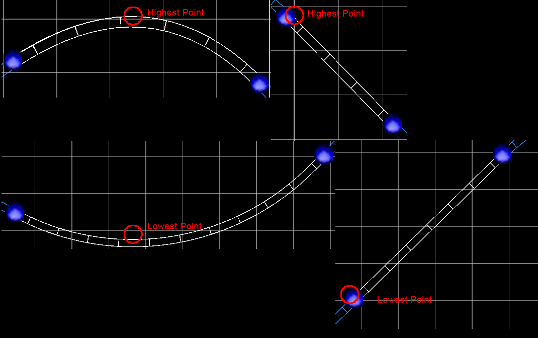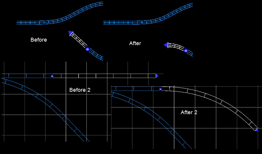 By default each added segment would be selectable as an individual track piece and straight with a default length. Adding a segment in front of the socket or plug would replace them with a teal ball. Double left clicking on a vertex that???s in-between two segments would add a segment in-between them.Left clicking on a segment while holding down the shift key would add and center a vertex in-between the segment splitting it in two segments which wouldn???t affect their length, formation, and banking of their rails.