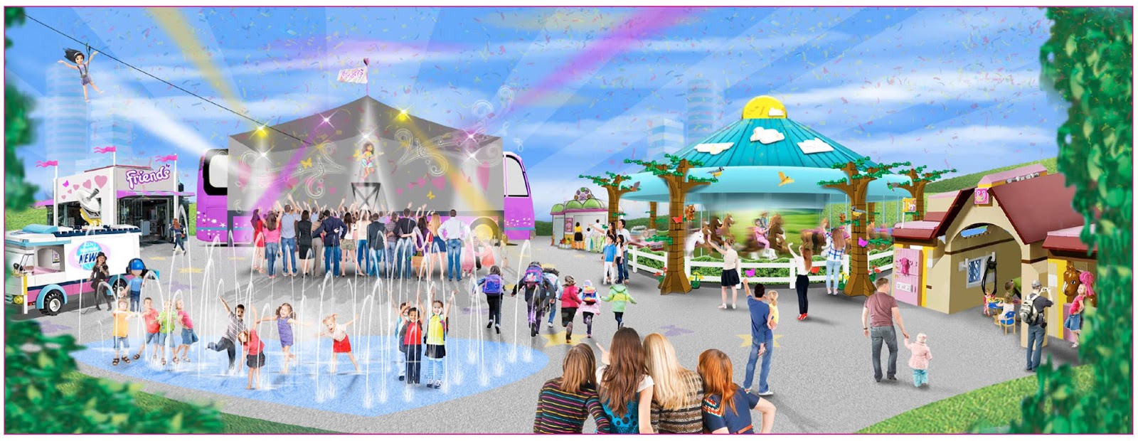 The area will represent a "significant investment" and be themed around the Lego Friends line of products, focusing on the lives and personalities of five girls: Mia, Olivia, Andrea, Stephanie and Emma. "The new area invites guests to sing along with Andrea at her tour bus, stroll through Lego horse stables, enjoy a building activity at one of the Lego brick tables and go for a horseback ride on the carousel in Mia??????s family ranch."