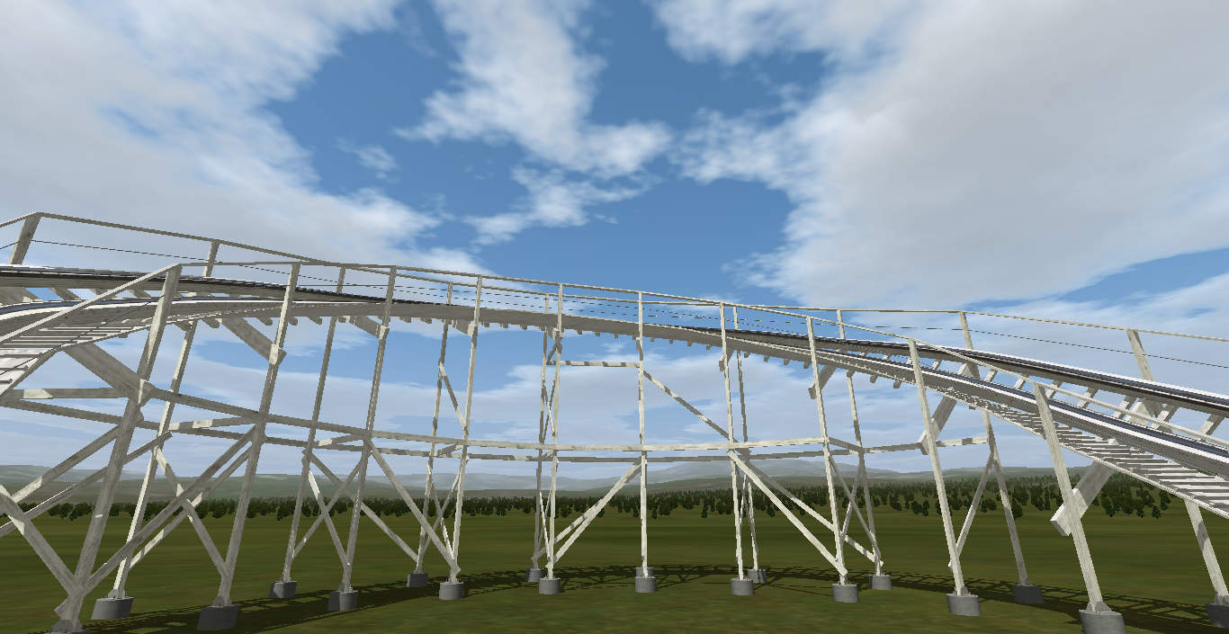 Tomorrow I will start with a fresh landscape and start building out from when the train leaves the station. Potentially there is room for improvement with the lift hill, and I'd have to start that from scratch anyway. Terraforming is needed, too, once the ride is complete.