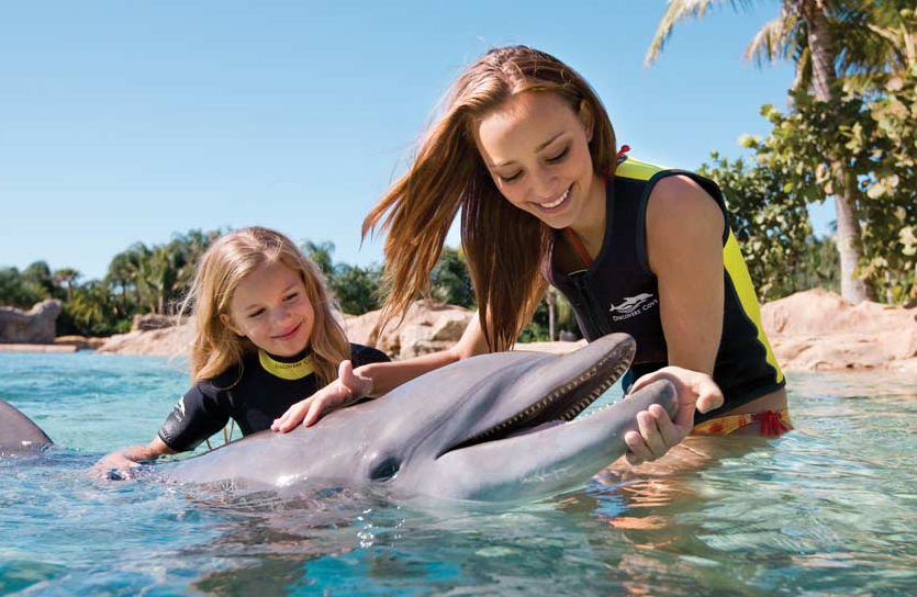Guests six years and up will be able to partake, starting with learning "about dolphin behavior and communication, along with SeaWorld's dolphin and research and rescue efforts. After their classroom presentation and discussion on dolphins' natural history and physiology, guests will wade into shallow water and become acquainted with one of these fascinating, intelligent dolphins through close contact during this one-on-one dolphin encounter. Then, taking the adventure one step further, guests can interact with their dolphin in deeper water for an exciting dorsal fin two ride back to shore."