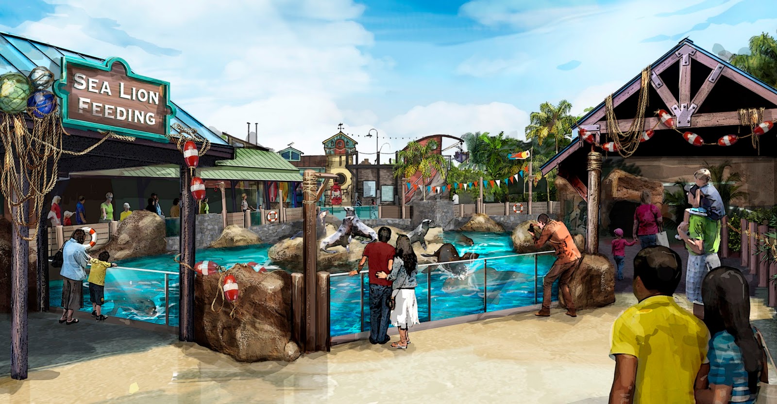 This Spring an all new sea lion exhibit will open in a new area named Pacific Point Preserve. Themed as a Pacific coastal town, the area will feature a renovated sea lion exhibit with interactive aspects, a brand new show named "Clyde & Seamore's Sea Lion High," and a new restaurant named the Harbor Market. Read more about this year's expansion on the park's official website.