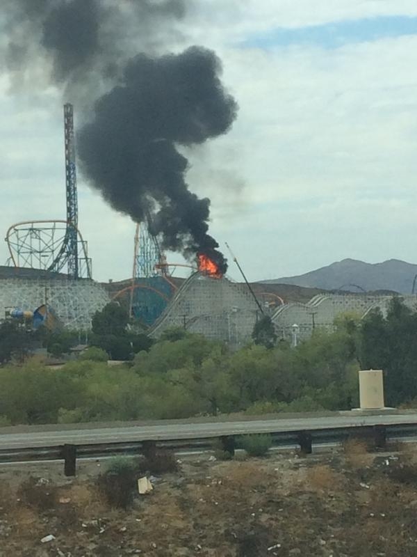 In a breaking news report, Colossus at Magic Mountain, which just closed around 3 weeks ago for its transition into Twisted Colossus, has caught on fire today around 1:30 PM. No one was reported injured, most likely because the park was not open today. The cause of the fire has been most likely due to welders doing construction work near the ride and a spark from the welders caught the wood on fire.