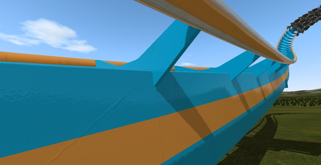 Okay so I know today is not a normal update day but I felt like I should share more pictures of Altitude:440 with all of you. Some people brought up that there could possibly a weight issue with the trains. After talking to the team and discussed weight, speed, and height issues and looking at several real examples such as Fury 325, we have decided it will be okay and will run smoothly with enough safety precautions. With that being said when we begin to support this beast, we will include a service elevator in case the coaster becomes stuck (Yes we know this is just a virtual park but we want to make it as realistic as possible) Along with the weight of the train issue, all of the G-Forces are perfectly fine with the coaster type and pacing for the coaster is perfect. With that being said please enjoy these pictures of our tallest coaster in the park, Altitude:440.