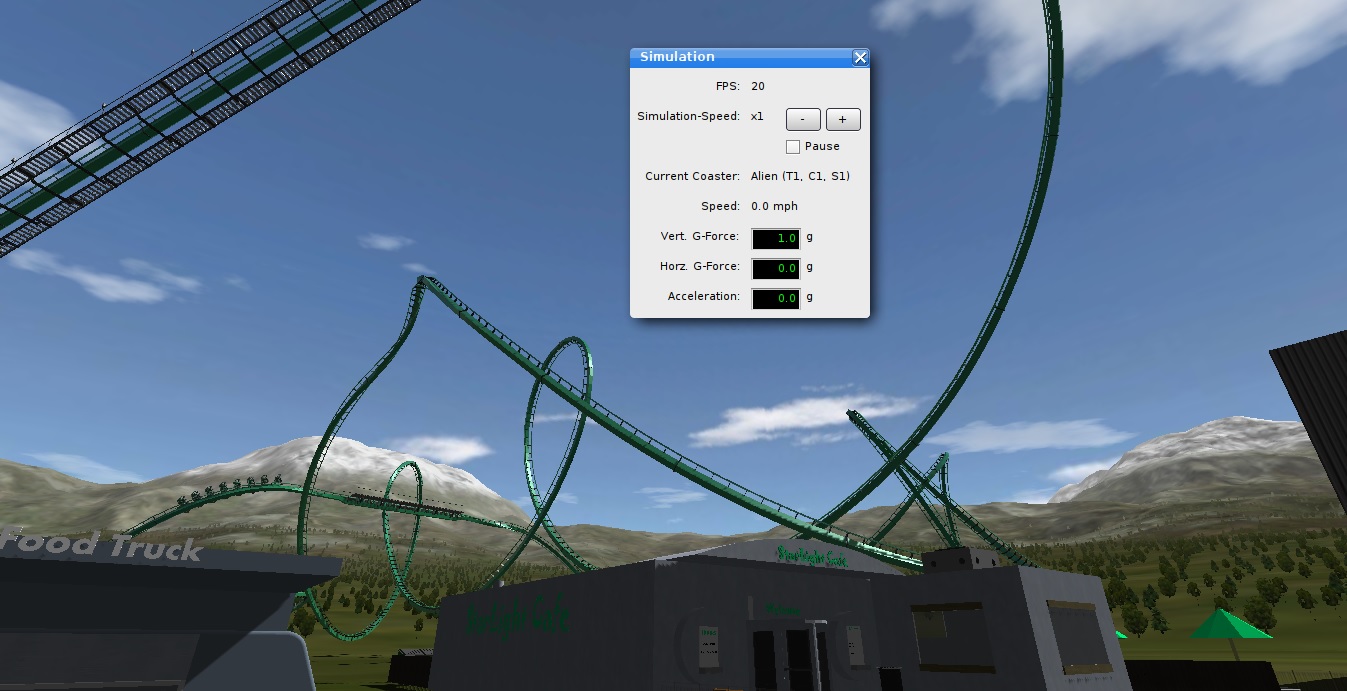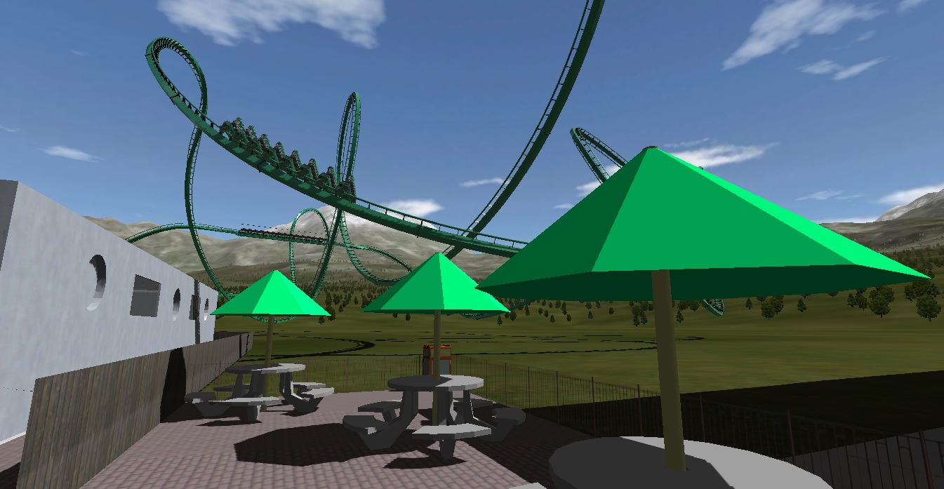 I have been playing with some 3d modeling and created one of the many restaurants that will go into the park. The restaurants name is StarLight Cafe and is to go near Alien. The restaurant has its own plaza, food truck, restaurant building, and even an outside seating area. Please note that this is still a WIP.