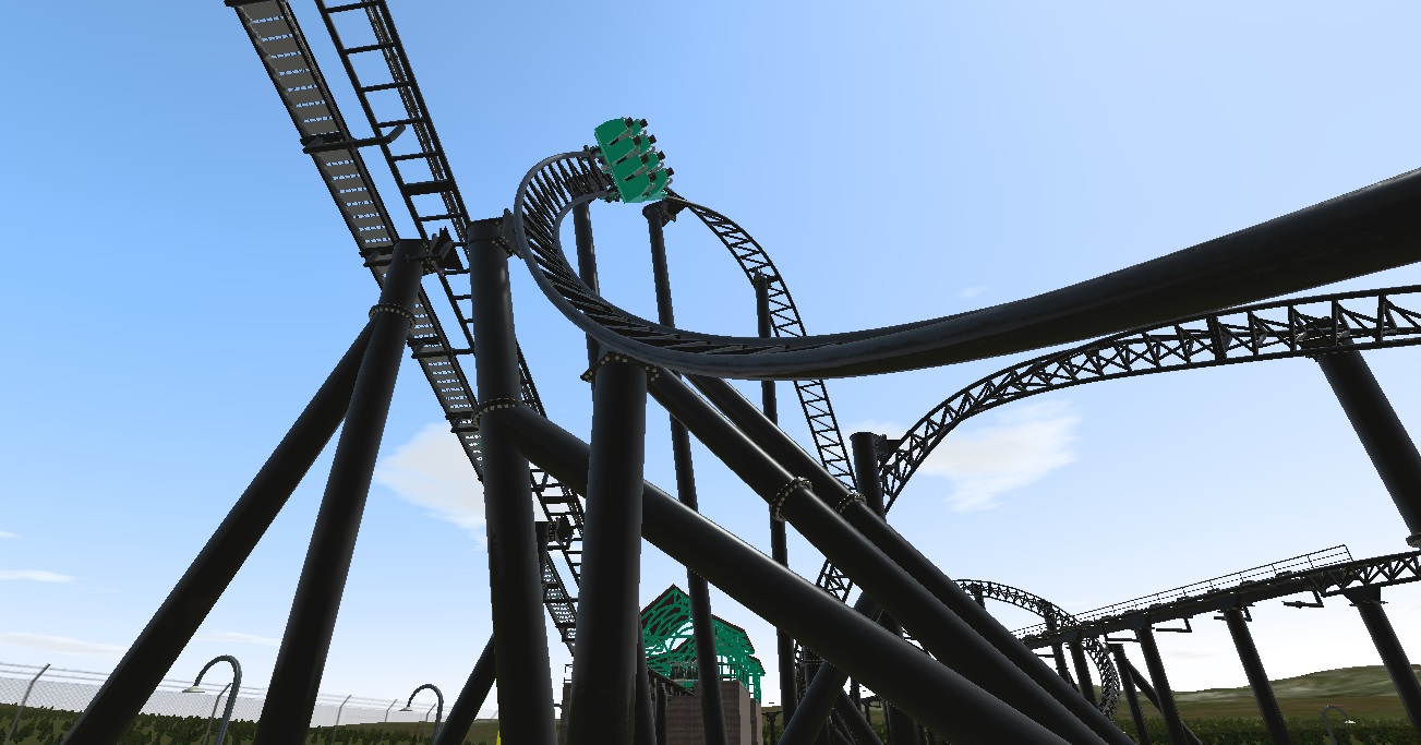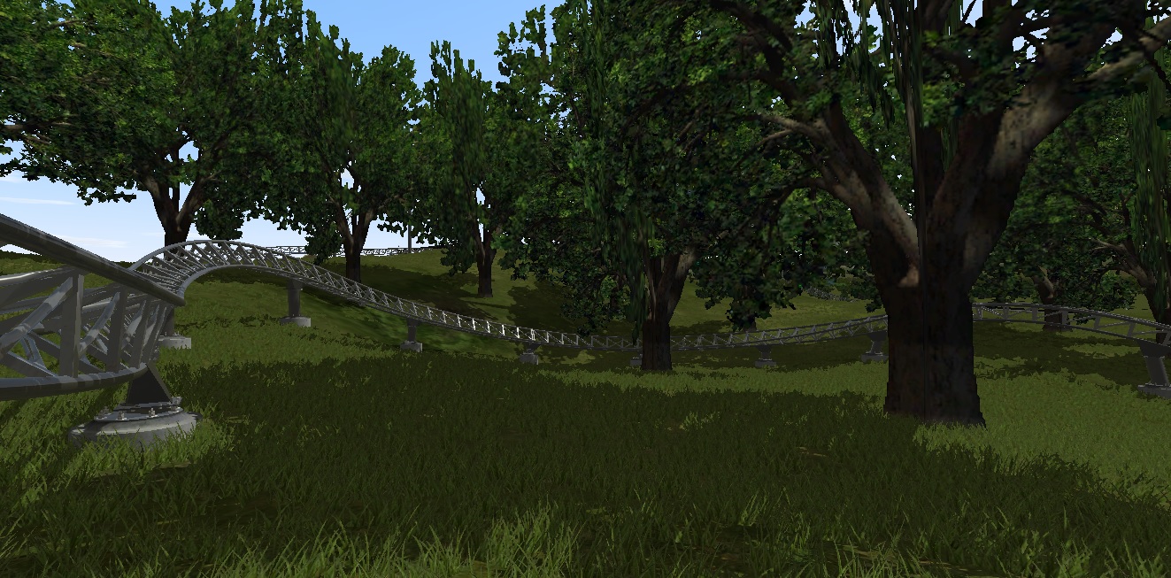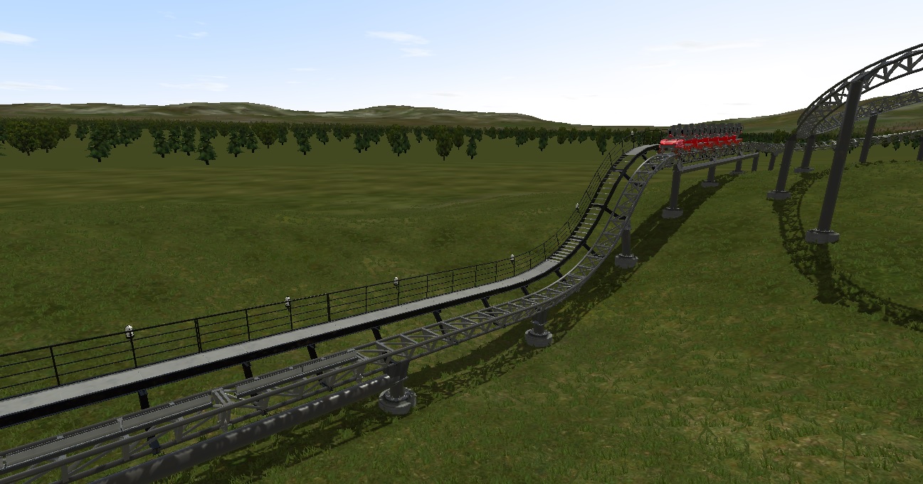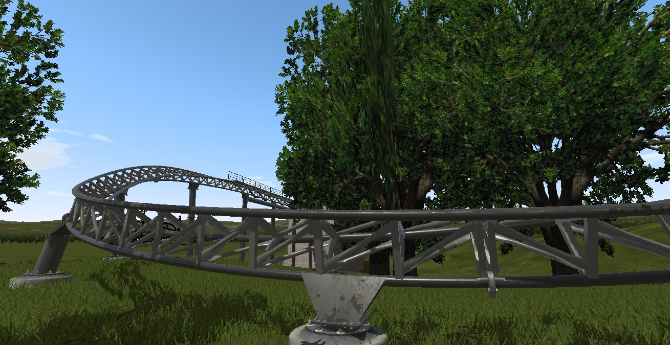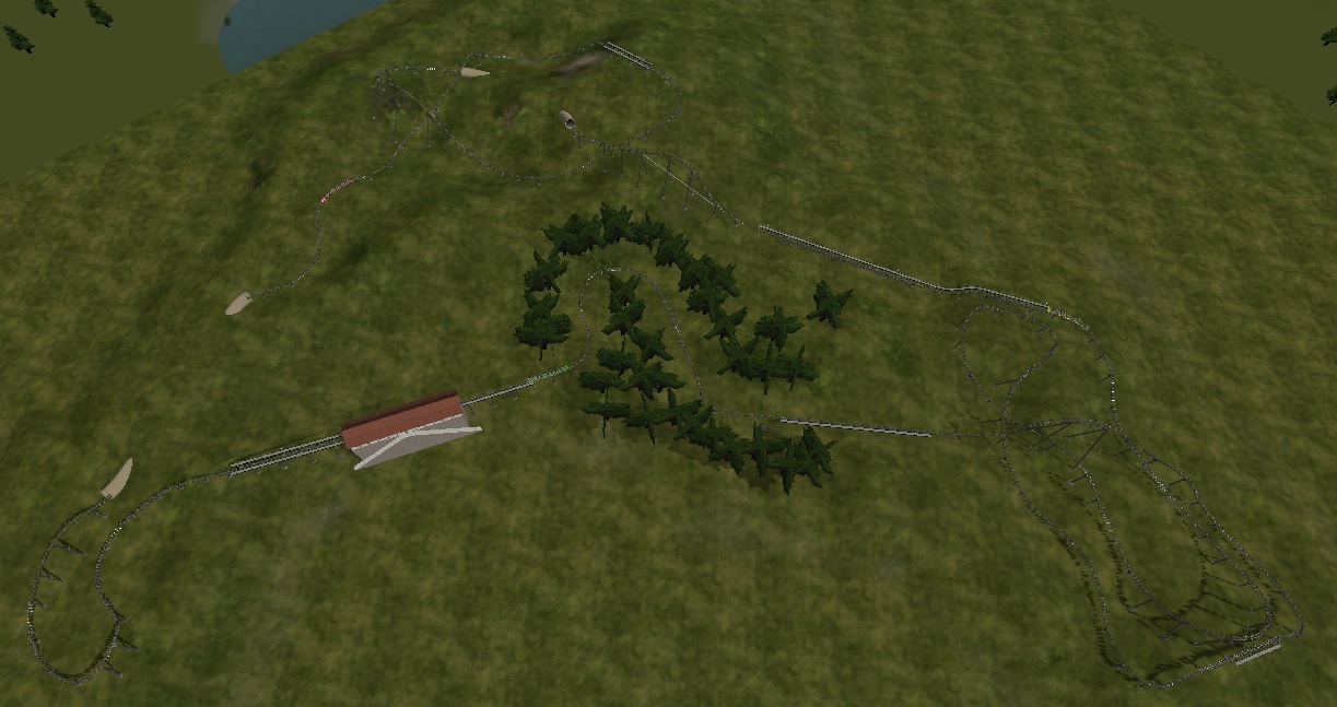 -I have begun working on the coaster for the Kiddie area of the park. I must say it is harder than I thought... I have to pay close attention to banking, speed, and height. I am modeling the coaster after Flying ACE Aerial Chase http://rcdb.com/1037.htm#
