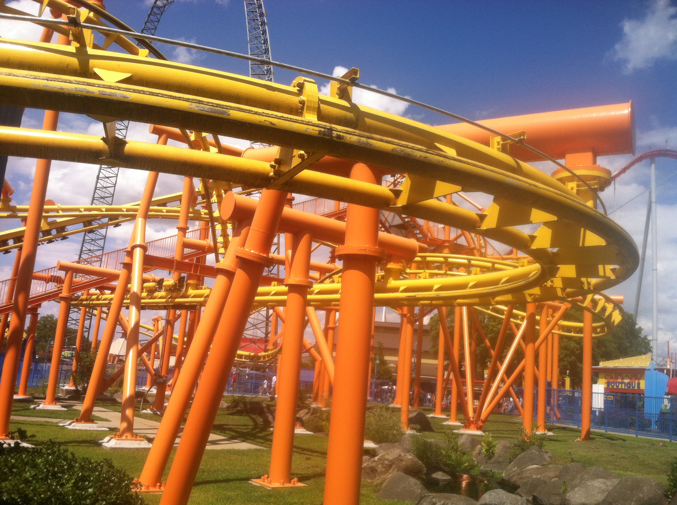 Afterburn - 10/10. Wow. This rollercoaster proves that bigger and faster does not always mean better. Alpengeist is bigger and faster than this but Afterburn is way more intense. Each element of the ride seems to happen much faster and pull you with more force. This was the top rated coaster at Carowinds for the longest time before Intimidator and Fury hit and I can see why. An awesome inverted coaster.