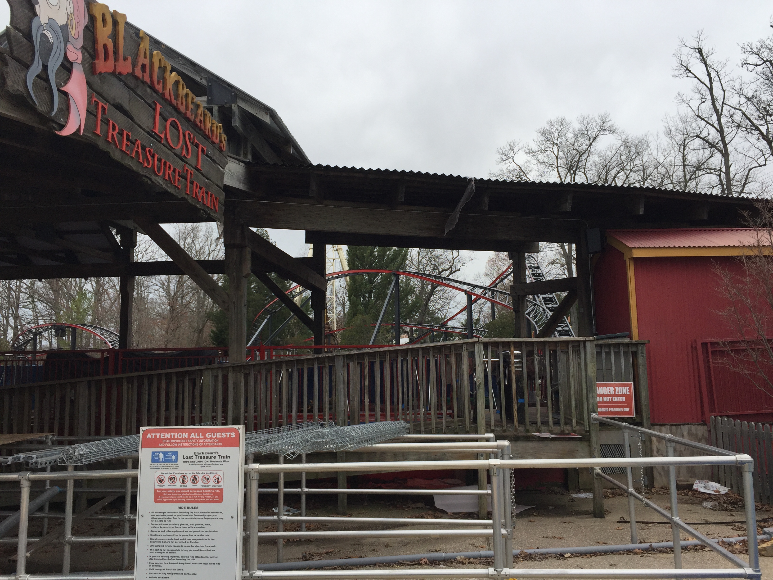 We then moved over a few feet and talked about the re-theming of Blackbeard's Lost Treasure train to Harley Quinn's Crazy Train. The ride has been painted a red and black color scheme, and the new ride sign will be up soon. The ride won't open on opening day, but should open at some point during April.