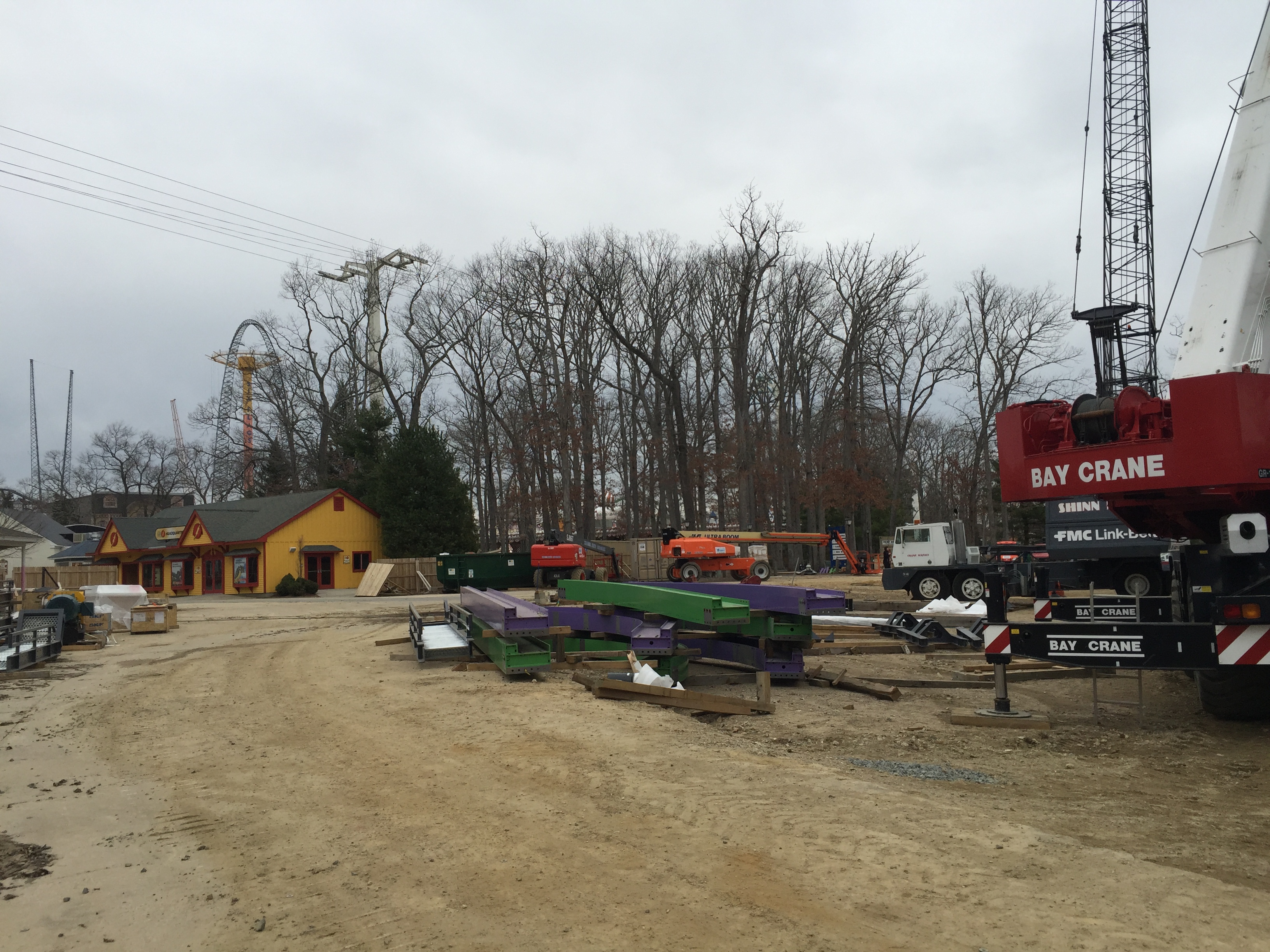 After viewing the trains, we headed over to the construction site. While on the way, we noticed that the Big Wheel was partially put back together. The park said it won't be ready for opening day on the 23rd. They said it will be ready during or after Spring Break.