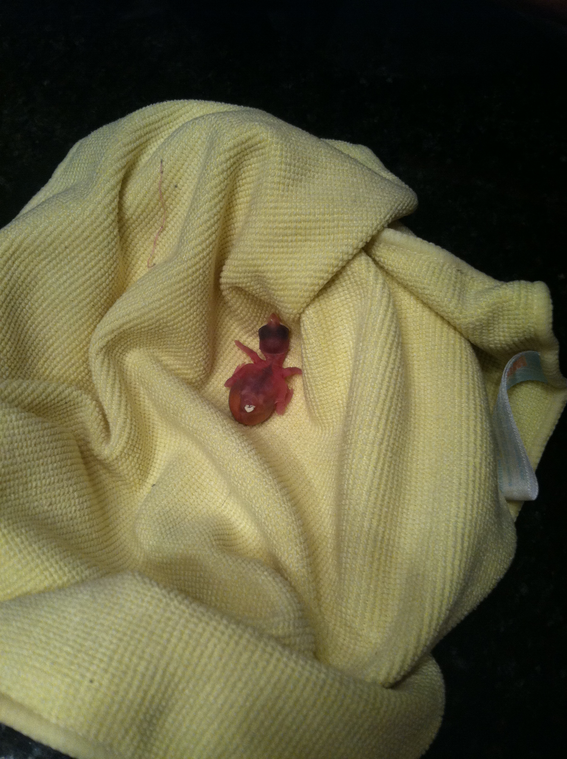 This is really sad. found it in our driveway> Yes it's still alive but I doubt It'll make it through the night. I know it's a long shot asking for help here.