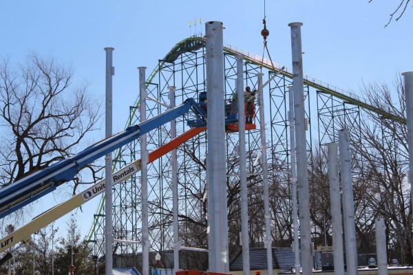 I complain about how cold it has been in Eastern Pennsylvania, but this is probably nothing compared to the temperatures this winter in Shakopee, Minnesota. That hasn't stopped Valleyfair from working on their 2015 Soak City expansion, with the park even building a temporary cover over the work site just to be able to pour concrete! Take that, snow.
