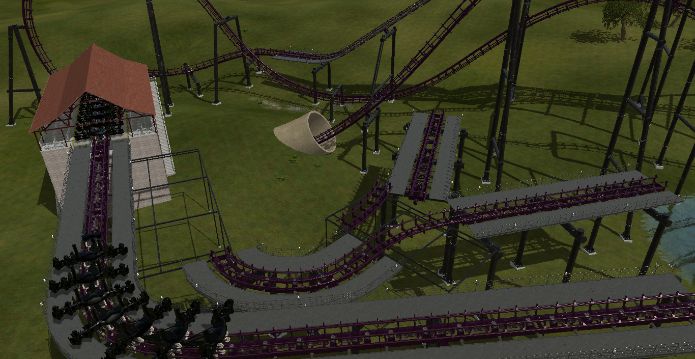 I'm all about trying different things with my coasters as I build more and more, and "Venom" is a unique 4th dimensional coaster unlike any other (It's small, but packs a pretty good punch). Every 4D coaster I've seen has started out with the train leaving the station backwards (as everyone knows that's how these moody machines roll) So I thought it would be pretty cool to run the train backwards... or.. forwards... let's just say backwards.