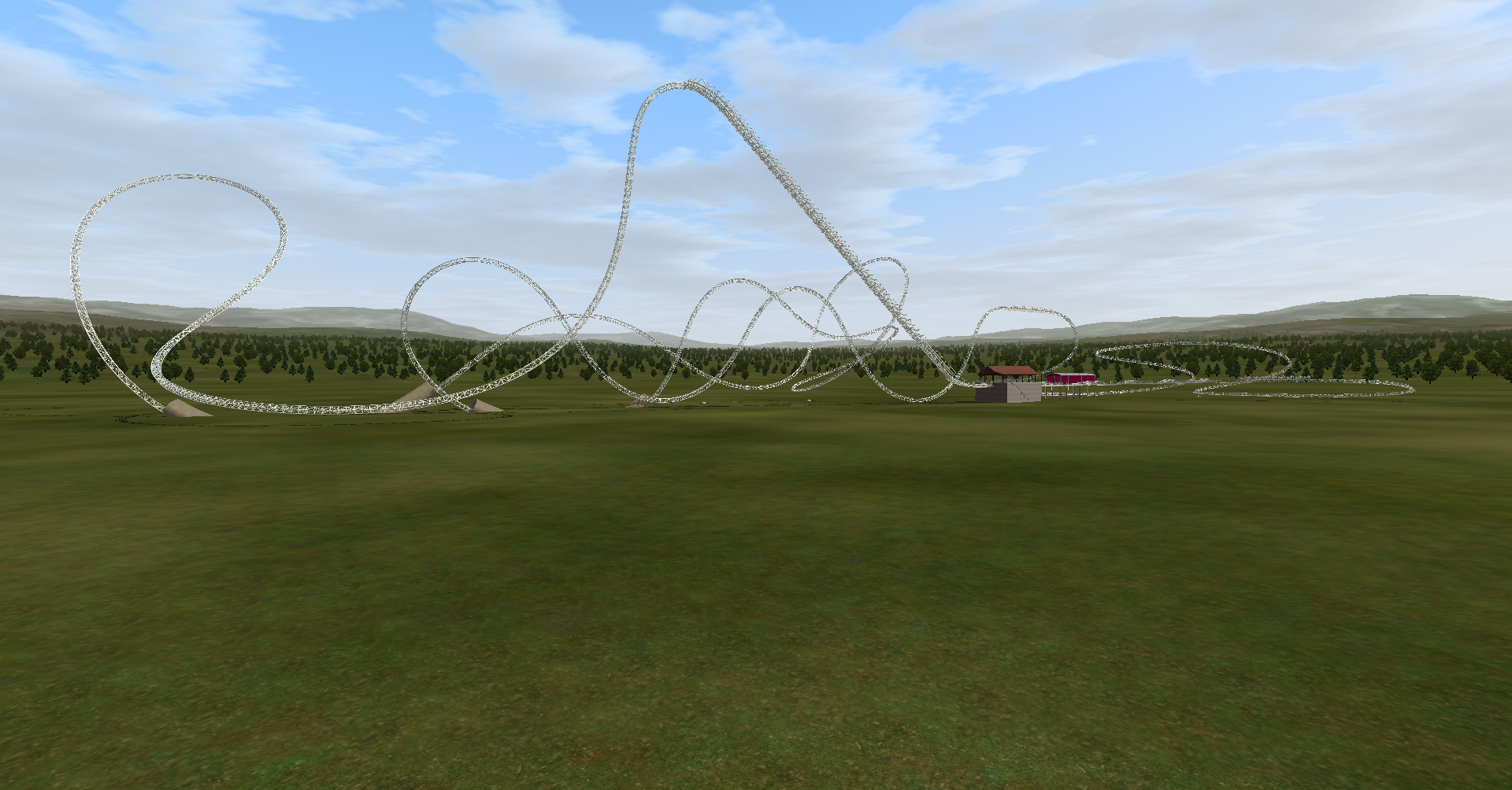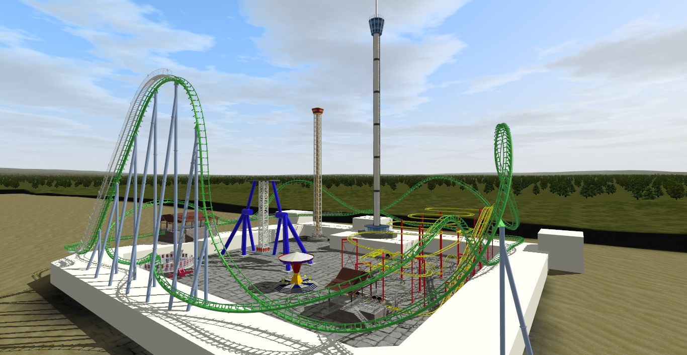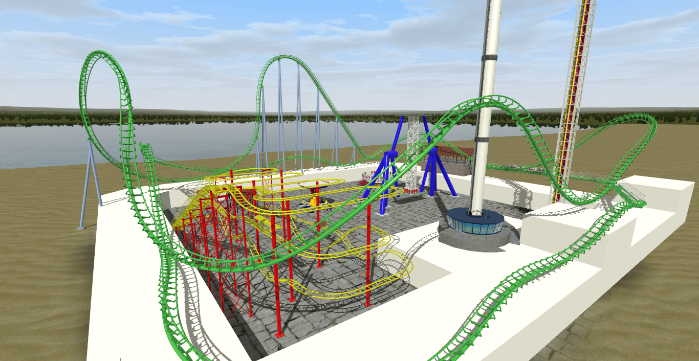 Eurofighter 350+ (Rage at Adventure Island) for a series of coasters I'm working on. The thing is compact layouts with affordable theming. Some of them will be existing layouts and some will be custom (I have already planned a dive machine, a launched 4D and another Eurofighter, but custom). Don't expect a spot on layout, but it rides like the real thing.